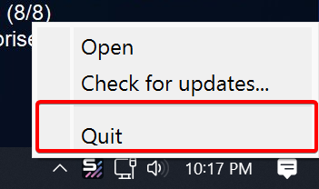 - Schließen Sie SignalRGB. Klicken Sie mit der rechten Maustaste auf das Symbol in der Taskleiste und wählen Sie Beenden.