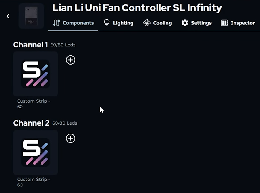 Chaque contrôleur RGB et en-tête de carte mère aura des bandeaux par défaut qui servent de substituts jusqu’à ce que vous spécifiiez quels composants sont connectés. Vous devez survoler ces bandeaux et les supprimer avant d’ajouter vos composants à chaque canal.
