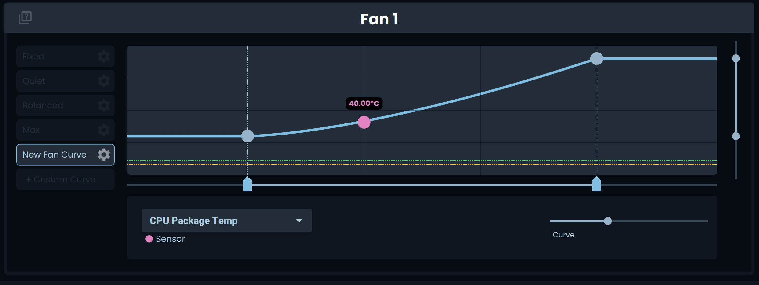 Pour créer une nouvelle courbe de ventilateur, cliquez sur le bouton Custom Curve situé dans la liste des courbes de ventilateur et donnez un nom à la nouvelle courbe.