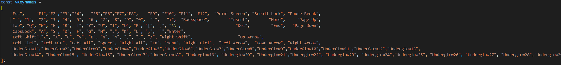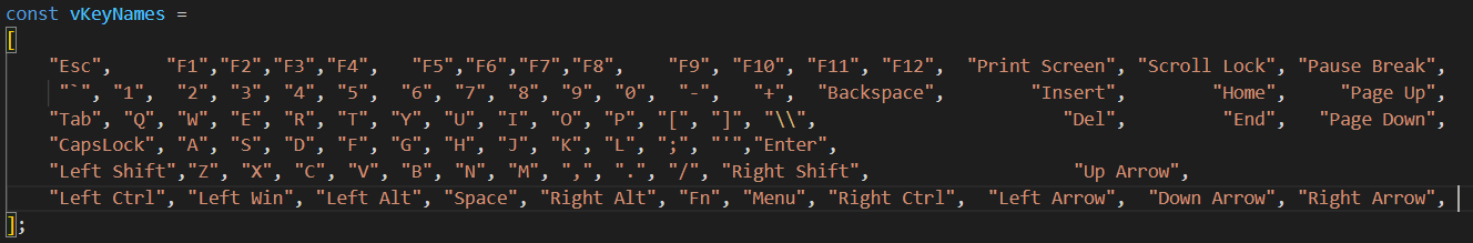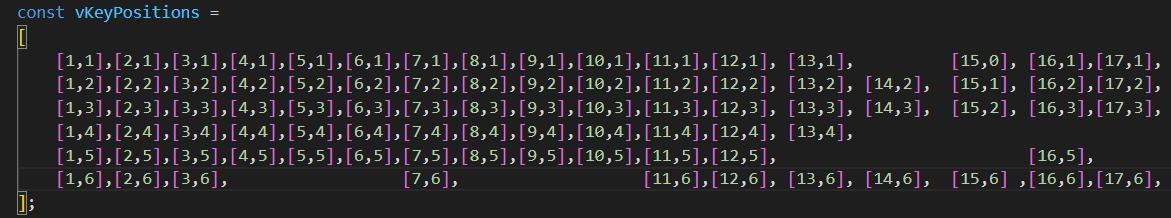 - Le tableau vKeyPositions indique à SignalRGB où se trouve chaque touche sur le clavier en termes de position.