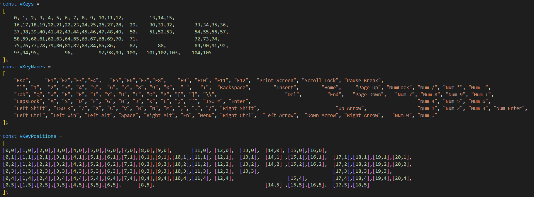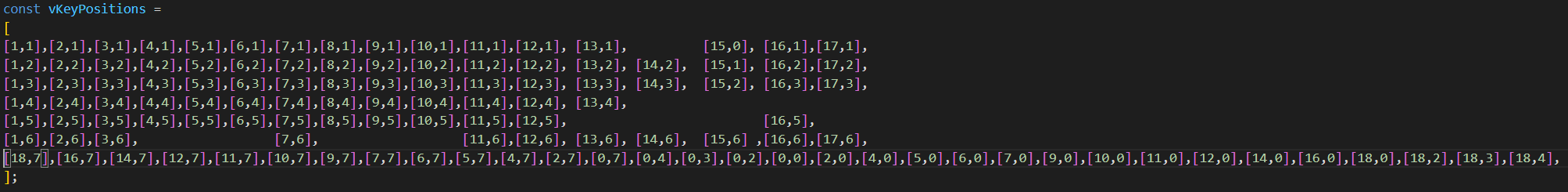 - Le tableau vKeyNames nous indique quelle touche correspond à chaque vKey et vKeyPosition.