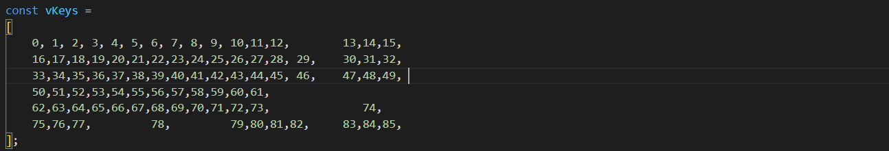 Enfin, mettez à jour le tableau vKeys pour qu’il corresponde aux tableaux vKeyNames et vKeysPositions.