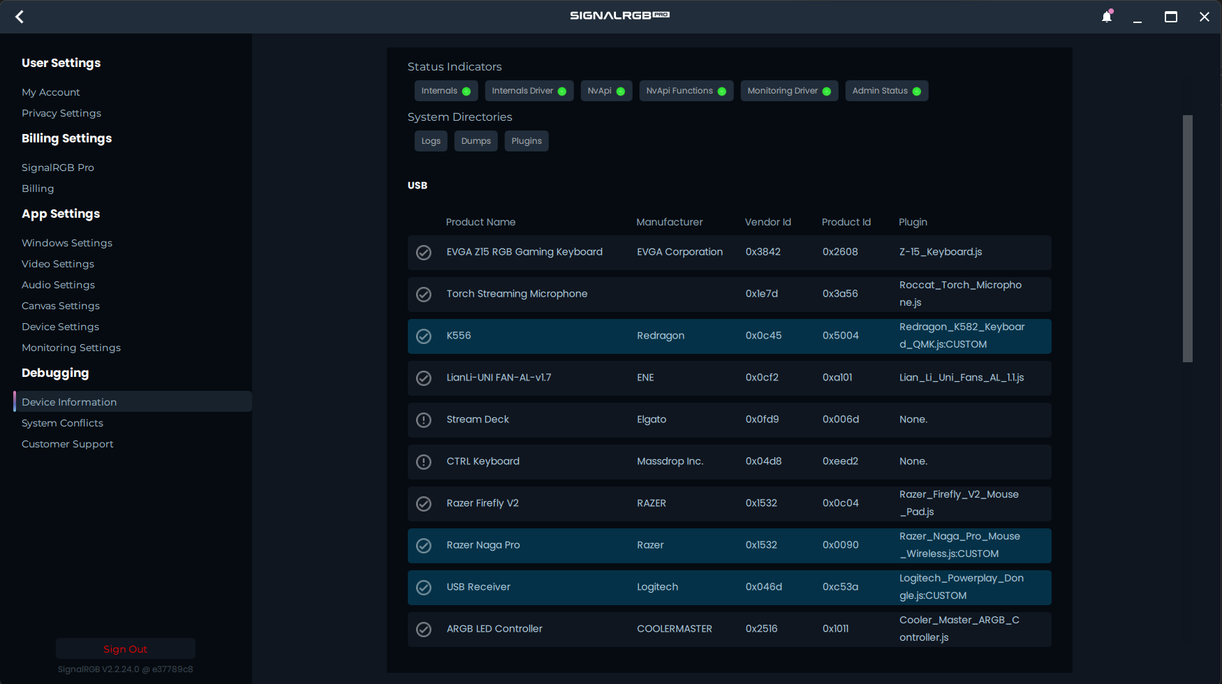 - Pour trouver le VendorId du clavier, ouvrez SignalRGB.