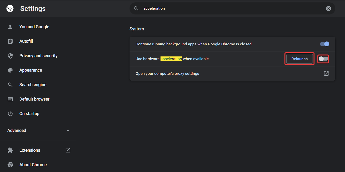 Les instructions pour désactiver l’accélération matérielle peuvent être trouvées ici.