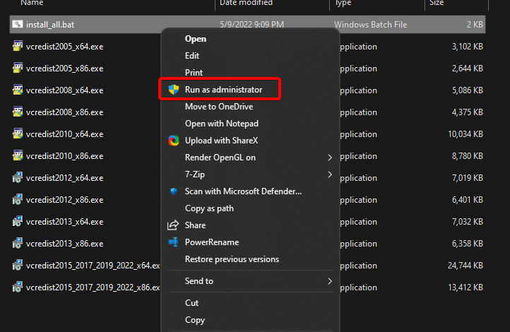 - Execute o install_all.bat com privilégios de administrador, clicando com o botão direito no arquivo e selecionando Executar como Administrador.