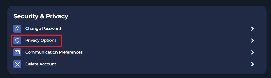 Once signed in, scroll to the bottom of your account overview page. Under the Security and Privacy section, click Privacy Options.